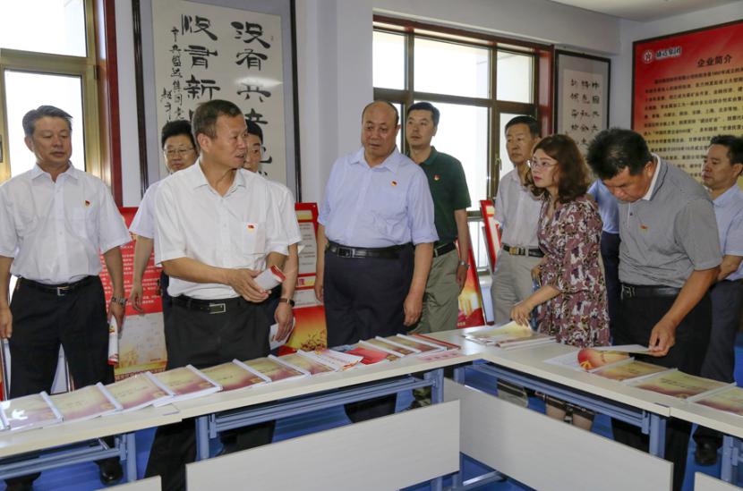 8月15日下午,国家市场监督管理总局登记注册局副局长韩旭在甘肃省、兰州市市场监督管理局领导陪同下,与西北六省“党建引领创新发展小个专党建典型巡回宣讲”成员一起,检查、指导甘肃盛达集团党建工作。